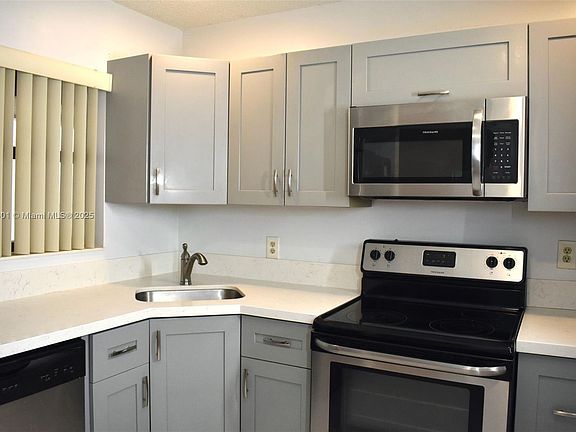 Recently upgraded 2/2 condo with Stainless Steel kitchen appliances, upgraded bathrooms, and wooden flooring. Well laid out with lots of closet space (walk-in closet in master). Updated bathrooms. Updated kitchen, which is large enough for a breakfast nook. Newer, full-sized washer & dryer in utility area off the large screened patio that overlooks the garden. All age community with clubhouse pools, tennis, pickleball, basketball courts, gym, playground. Credit score requirement per association is 650+, Rentspree, and community interview. Walking distance to the Community Pool. Well-kept development. Close to Trade Winds Park. This deal includes cable & water! Only 1st, 1 month's security & Condo App to move in!