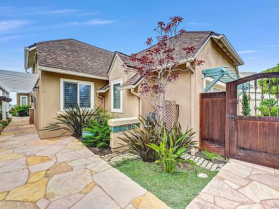 Single-level home buyers, This is your spectacular home with views!! Less than a 10-minute drive or 2 miles to Carlsbad’s beautiful beaches. Nestled in the desirable neighborhood of Tamarack Point, this exquisite home boasts a breathtaking entrance through a beautiful gated fenced-in area. The flagstone walkway and pergola overhead set the stage for a spacious backyard that offers stunning westerly sunset views and a glimpse of the Pacific Ocean. With ample room for a pool, the backyard still provides ample space for entertaining. Avocado and citrus trees line the side yard, while two patios, each adorned with a pergola, grace the yard. As you step through your leaded glass front door, you’re greeted by newer floors and vaulted ceilings that create a warm and inviting atmosphere. The home is equipped with modern amenities such as a tankless water heater, whole-house water filtration, and air conditioning. The updated kitchen features Bosch appliances and stone countertops, providing a chef’s dream come true. Sliding glass doors connect the dining room and family room to the side patio, flooding the space with natural light. The room boasts a beautiful vaulted ceiling, a cozy fireplace, a built-in bar area, and plantation shutters. The oversized master bedroom is a true sanctuary, complete with vaulted ceilings, a cedar walk-in closet, and a luxurious walk-in soaker tub in the attached master suite. A bright sliding glass door opens to a small patio with a pergola, offering a private retreat. Two guest bedrooms are located on front side of the home. Must see!!