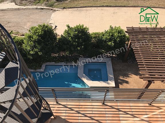 Beautiful Two-story 4 bedrooms, 4 1/2 bathrooms home for lease in Fairway Vista in Irving. Gated community. 4500 sq. ft. 2005 Built. Downstairs has a huge family room with a fireplace. The large kitchen has a subzero refrigerator and stainless dishwasher, microwave oven and wine cooler. Island kitchen. Breakfast area. Formal Dining. Two car garage with two separate doors and openers. The utility room comes with a washer and dryer. The backyard has a pool. The master suite is downstairs, comes with jetted tub and separate stand-in shower. Hardwood floor throughout the house. Tile in wet areas. Game room upstairs has an immaculate view and wet bar. 3 Bedrooms and 3 bathrooms are upstairs. Game room has a balcony with golf course view. A small terrace upstairs.