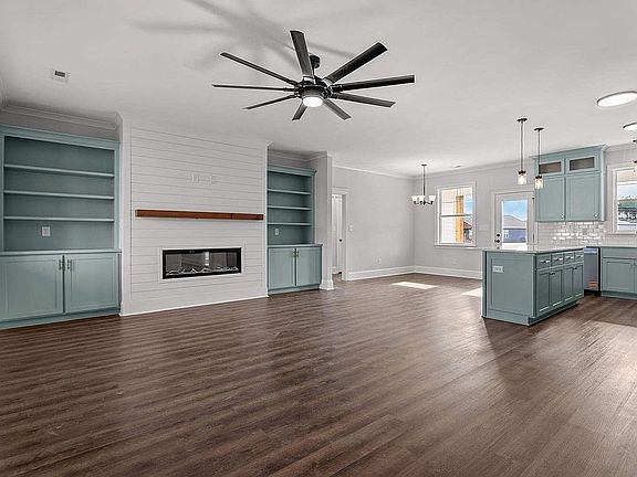 This newer construction home combines modern finishes with functional comfort. Inside, you’ll find quartz countertops throughout, stainless steel appliances (including the refrigerator), and an inviting living area featuring an electric fireplace with custom built-ins — perfect for both entertaining and everyday living.