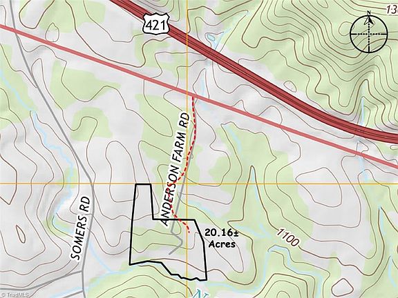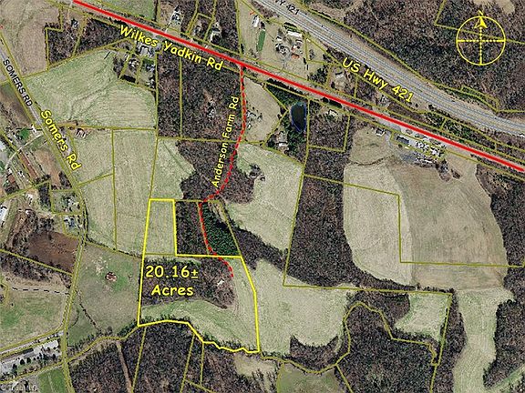 20.16± Acres - Near US Hwy 421. Looking for a secluded tract of land with gentle slopes, near a major road? This property is only a 2-min drive off US Highway 421 in Wilkes County near I-77. Here you'll enjoy farmland, and wooded land fronting nearly 1200ft on a major creek. An older manufactured home is currently connected to power and has a well that provides a great opportunity to enjoy a secluded getaway to share with friends and family. Currently, the fields are being used for farming and the wooded areas offer future income from timber sales and future farming activities. Access is via deeded right-of-way along existing farm road. The 17.28± acre parcel adjoins the 2.88±acre parcel that is a portion of the overall subject 20.16±acre. Whether you are looking for a secluded, yet easily accessible property, this tract of land offers open fields and wooded areas, in addition to long frontage on a major stream.