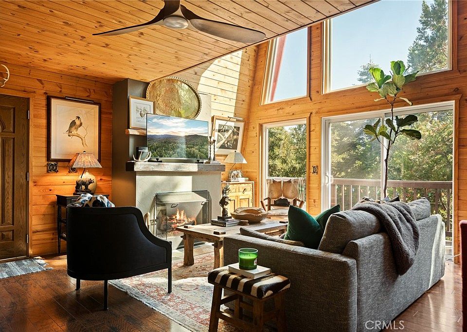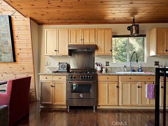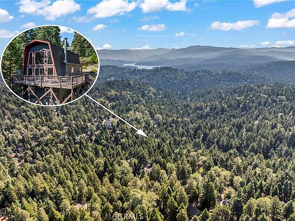 WOW, WOW, WOW!!! Super Cool Cabin with Amazing Views Sitting in the Tops of the Trees! JUST STUNNING!!! You Will Love the Gorgeous Natural Light Streaming in Through the Wall of Windows... You are Surrounded by Tongue & Groove Wood Throughout & the Smell of the Pines & Cedars Will Remind You that You are in the Mountains!! Sit out on the Deck, Bask in the Tranquility and ENJOY THE VIEWS!!! You Can See All the Way to Big Bear!!! Gorgeous Trees All Around!!!! So Lush! Modern Kitchen with Stainless Steel Appliances - Definitely a Rustic Modern Vibe Here! Bedrooms on Each Level Give Everyone Privacy... Lowest Level Bedroom is Currently Being Used as a Den. Natural Landscaping & Beautiful Blooms to Make You Say Wow on Your Way to the Front Door! Newer Build w/LOTS OF PRIVACY on 1/3 Acre!!! Can Come Partially Furnished! Plenty of Space Behind Home to Create a Yard or Additional Patio/Sitting Area! Come & See... You Won't Want to Leave!