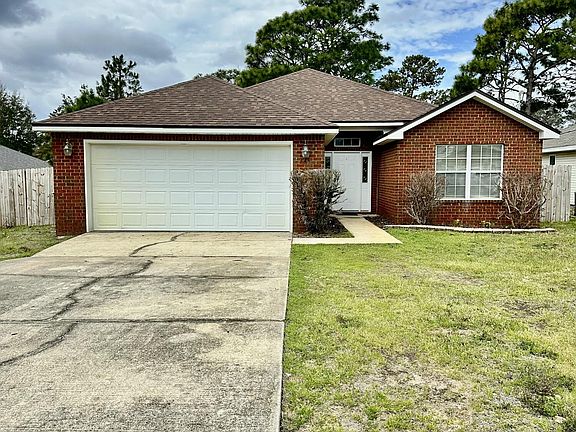 Cozy 3-bedroom 2-bath brick home close to Hurlburt Field. Perfect starter home for a very competitive price in a nice area with A+ schools. This home opens with vaulted ceilings in the living room and fireplace. To the right the home splits into 2 bedrooms with a guest bath. As you enter the dining on your left... the house splits again into the master bedroom and the kitchen/laundry. The master bedroom is very spacious and has a walk-in closet, soaking tub and shower in the bathroom. The Kitchen is equipped with all new stainless-steel appliances (less than a year old) and brand-new granite counter tops. The roof is less than 3 years old, the HVAC is 5 years old and the Hot water heater is 7 years old. Assumable VA loan at 5.375%!
