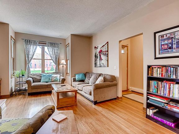 You will appreciate this spacious 2 bedroom condo with high ceilings. Bedrooms are large and have deep closets which is so hard to find in this trendy Cathedral Hill neighborhood. Hardwood floors in living room and dining room. Wood burning fireplace in the living room. Newer Andersen windows. Newer roof. New Hot water heater. This condo has ductless wall mounted AC which is a huge bonus. Updated kitchen with granite countertops, maple cabinets and SS appliances. Rear deck. HOA dues include heating. Extra storage in basement. New garage door. Walking distance to restaurants, coffee shops, bus line, St. Paul Cathedral, Summit Ave and so much more!