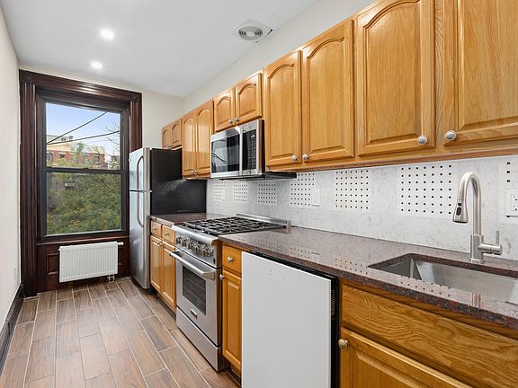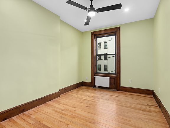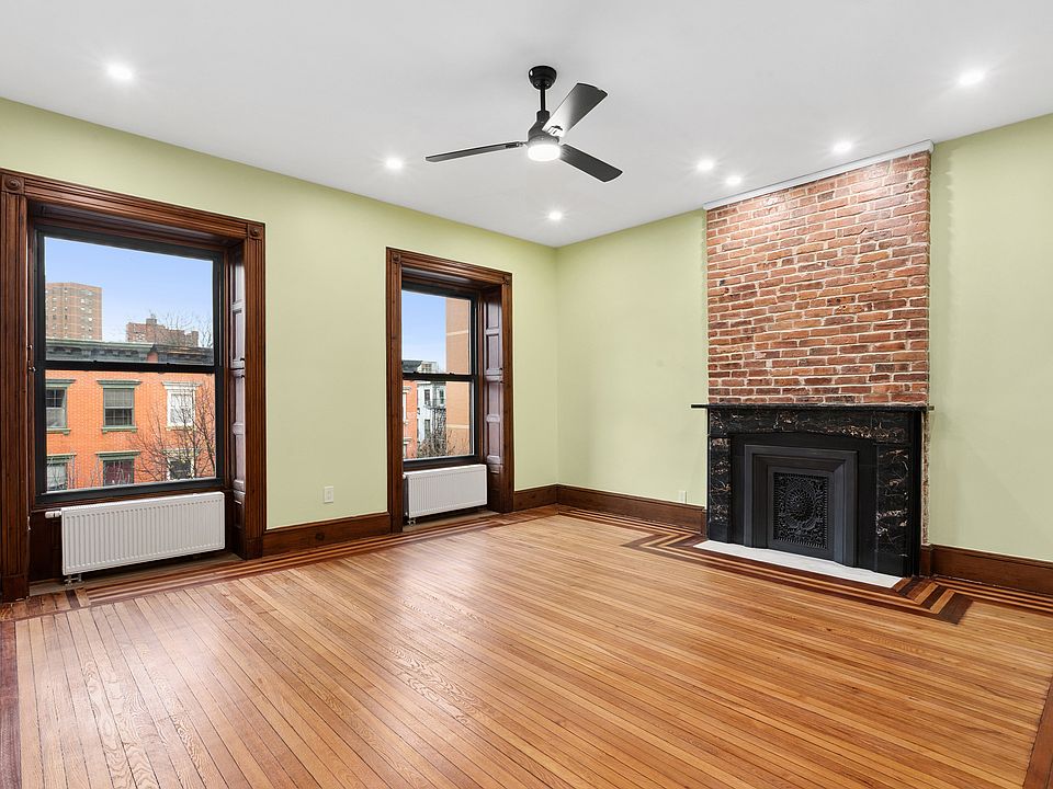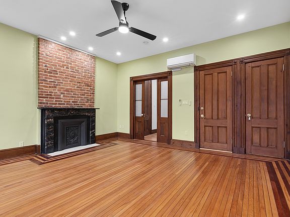 Brand New Renovation -- This top floor townhouse one bedroom with home office has been renovated and restored to showcase original 19th century details while boasting modern amenities. A full floor home, the living room features a decorative fireplace with exposed brick, two oversized windows with original wooden moldings and shutters, and ample sunlight. Off the living room is a flexible space which can accommodate a work-from-home setup and also has two large closets. Facing away from the street, the spacious bedroom has a southern exposure and easily fits a queen or king bed set. The windowed kitchen includes modern appliances and ample storage and prep space. A beautifully renovated marble bathroom, central heating and cooling, hardwood flooring throughout, recessed lighting, meticulously restored doors and moldings, and in-unit washer/dryer complete this special offering. One-year minimum lease term. Pets are considered on a case-by-case basis.