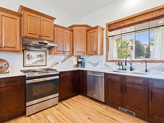 This spacious, move-in-ready, 4-bedroom, 3-bath home with a walkout basement welcomes you with abundant natural light the second you walk in the door, boasting beautiful hardwood floors and ten-foot ceilings. The open-concept layout is perfect for entertaining or large family gatherings, complete with beautiful Cambria quartz countertops and backsplash in the kitchen, high-end Kitchen Aid dishwasher and generous sized refrigerator / freezer, as well as a gas stove and large peninsula that comfortably seats five.