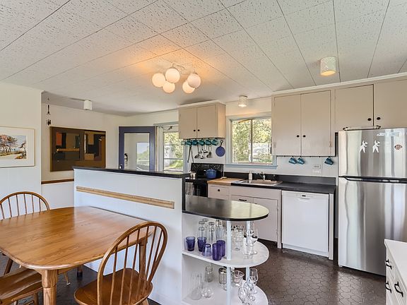 - OSh, Floor 1: Open concept kitchen/living/dinning room. Primary bedroom with ensuite bath. Sliding glass doors throughout and full width deck facing the sound.