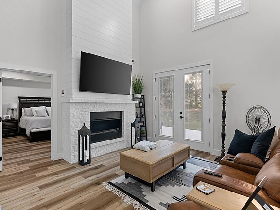 Move in Ready! This stunning townhouse features a crisp, white-painted exterior complemented by warm wood accents. The open concept features 4 bedrooms and 4 full baths. The great room boasts a vaulted ceiling and a striking fireplace with white-painted brick and shiplap. The kitchen has a large island, white cabinets, and a pantry. A loft area with black horizontal railing over looks the great room. The master suite is conveniently located on the main level, with 3 additional bedrooms and 2 baths upstairs. It also has a 2-car garage and a large patio. The community offers amenities such as a swimming pool, tennis court, a walking trail, and a playground.