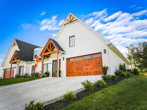 Large islandCrisp white-painted exteriorOpen conceptLarge patioVaulted ceilingWarm wood accents