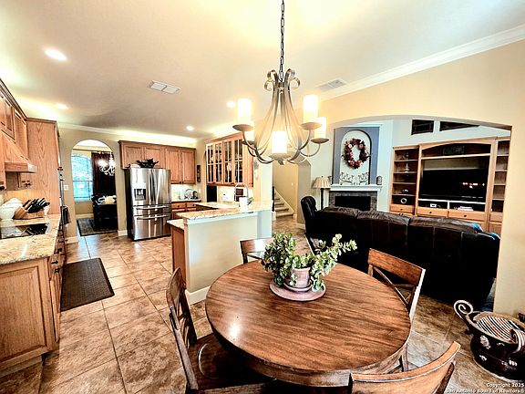 HUGE PRICE IMPROVEMENT! MOTIVATED SELLERS! BRING ALL OFFERS! Looking for wooded privacy in the heart of the Hill Country AND proximity to all the amenities that "city life" offers? This impeccably maintained 4-bed, 2.5-bath home in the highly sought River Crossing community should be seen in person. The soaring 16+-foot ceilings and wall of windows make quite the first impression as you walk through the high-end Mission-style front doors. Look right and you'll see the beautiful formal dining room, which is large enough to fit a table for eight plus a hutch. Look left and you'll see the grand staircase that leads you up to three bedrooms, an oversized full bathroom w/ double vanity, a media/game/exercise room, and a bird's eye view of the beautiful trees and wildlife in the back of the property. Your eye will catch the spacious office/library/play space that splits the first and second floors. Glass French doors minimize noise while allowing the natural light beaming from upstairs and downstairs windows to flow in. Before you go upstairs, though, take a few minutes to appreciate the glow of the open, airy living room that sits between the primary bedroom and kitchen. Light from the floor-to-ceiling windows adorns the big, inviting wood-burning fireplace and built-in entertainment center. It also brightens the kitchen and breakfast area, where glass French doors provide easy access to the iron-fenced play yard/dog run. With the primary bedroom on the first floor, this 2950-sq ft home offers the perfect "single story" living experience for those who don't want to climb stairs every day but still want plenty of space for the kids, grandkids, or guests. This home also gives "new home" vibes without the price tag of a new build. - All fixtures in the home are less than five years old. - The exterior was painted in 2024, and the interior received a face lift in 2022. - Two new energy-efficient 3-ton Trane units AND two new electric water heaters were installed in 2022. - The kitchen was upgraded with beautiful stainless appliances (which are surrounded by lots of 42" cabinets for more than enough storage). - The upstairs carpet looks like no one has ever walked on it. Still "original" to the home is the charm of this secret hideaway. All the floors and countertops have been beautifully maintained by the current owners. - An oversized insulated garage door was installed to keep the garage nice and cool. A few other things that you don't want to miss: - Fiber internet (GVTC) that will keep every device running at top speeds, including the cameras+sensors you attach to the wired security system. - A whole-home vacuum that makes cleanup easy. - The parking! This driveway could have its own road name. You'll never have to worry about bothering neighbors with extra cars. - The central positioning of the house. The 50x100' iron-fenced yard extends to a side property line. However, the back property line for this 1.3-acre lot is MUCH further back. (See the survey.) - The (newer) water softener that will save your plumbing, skin, and hair. - Crown molding that elevates most of the downstairs spaces, making it feel like you're in a luxurious vacation home. - That jetted soaking tub in the primary bathroom. (And the walk-in closet- talk about the dream bath.) - The windows! (Did I mention that already?) You'll feel like you're outside even when you're inside. What's better is that every window features blinds that can be adjusted from ground level. So, you can "dim the light" to enjoy an afternoon nap in front of the fireplace or have an early movie night with the family. Prefer the house light and bright? Simply lift the blinds to restore the home's vibrancy - and a direct line of sight to the wildlife. If you're even thinking about living in Spring Branch (and River Crossing) this is a home that needs to be on your "must see" list. Pictures do not do it justice!