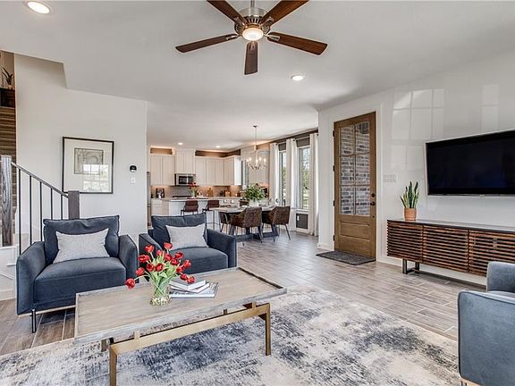 CB JENI HOMES HOLLY floor plan. 2 Bedrooms, 2.5 Baths, 1 Living, 1 Dining, Over-sized 2 car garage. This 2 bedroom, open concept design is packed with luxury design, quartz counter tops, beautiful plank flooring, large walk in pantry, and lots of closet space! At 1,555 sf this floor plan is perfect for downsizers and first-time homeowners alike! A large owner's suite and nicely sized guest room upstairs perfectly balances the large living and kitchen area downstairs. This home site backs up to a tree line for extra privacy. Come see this outstanding open concept design and view the gorgeous amenities offered at our newest community...Apple's Crossing in Fairview. Best Kept Secret in McKinney ISD!!