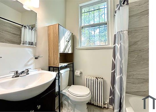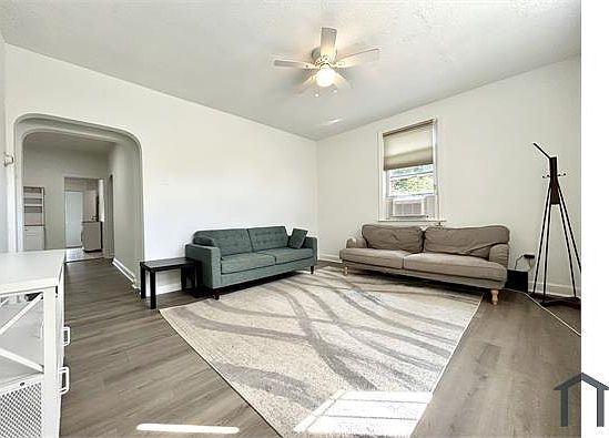 New flooringTiled bathroomRadiator heatKitchen with granite countertopWindow ac unitsCeiling fans