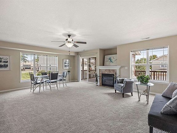 This townhome-style condo offers an open layout on the main level with a kitchen featuring plenty of counter space, dining area, and living room with a gas fireplace. From the living room, step out to the deck and screened porch for additional outdoor living. Upstairs, the primary bedroom includes a tray ceiling, walk-in closet, and private bath with a walk-in shower. A laundry closet is conveniently located in the hallway, along with two additional bedrooms and a full bath. The lower level provides a flex space that works well as a drop zone from the garage entry.
