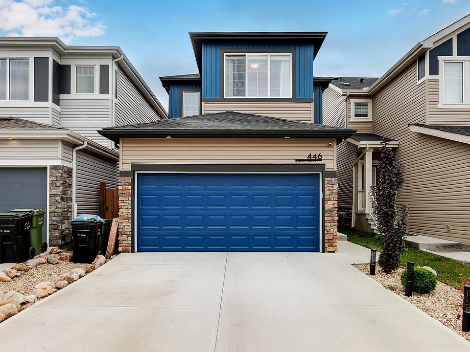 Welcome to this stunning 1985sq ft two-storey home that perfectly blends style, comfort, and functionality. Featuring a front-attached garage and a thoughtfully designed layout, this home offers 3 spacious bedrooms and 2.5 bathrooms. The bright corner kitchen boasts a large square island overlooking the backyard—perfect for entertaining or family meals. The main floor includes a generous entryway and an inviting family room ideal for relaxing or hosting guests and smart home controls for the light fixtures. Upstairs, the primary suite impresses with a luxurious 5-piece ensuite and an oversized walk-in closet that connects directly to the convenient upstairs laundry room. A large bonus room adds versatile living space, while the secondary bedrooms are big enough to comfortably fit king-sized beds. Outside, enjoy a beautifully landscaped, low-maintenance backyard designed for effortless outdoor living and year-round relaxation. This home offers everything your family needs—style, space, and ease of living.