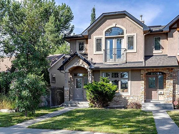 A very special location! Situated on a quiet street with downtown skyline views & facing a large, beautifully treed park with a playground area set up for children. Convenient access to Deerfoot Trail, downtown, transit, shopping & schools. Luxuriously appointed finishes inside this fully developed, two storey with over 2839 sq. ft. of professionally developed living space. Spacious foyer with double closet, combination great room/dining room, with 9’ ceilings & rich solid wood floors. Very open kitchen with extended height cabinetry, a huge island with breakfast bar & a pantry. Cozy family room with gas fireplace, a full wall of built-ins & French door access to a back deck. There is a powder room tucked away 2 steps down from the main floor. Upstairs features 3 large bedrooms including a king size master with walk-in closet & a luxurious 5pc ensuite. There is a 4pc bath conveniently located next to the spacious laundry room on the 2nd floor. The lower level is fully finished & includes a cozy rec room with a built-in bar area, a huge office space & a full bath. The yard is a good size & includes a double detached garage & deck with gas hookup for a BBQ.