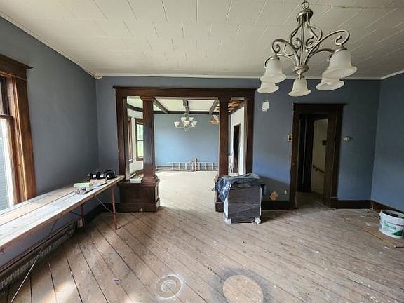 Beautiful original craftsman woodwork in this Four square style home. The remodeling has begun and is waiting for you to customize with your final touches. The home has a hard to find chauffeured ceiling in the dining room, wood staircase, room divider, wood floors, upper level sleeping porch (non-conforming bedroom), leaded glass windows along with some newer windows to match the patina, a central air unit in the attic and warm boiler heat. All loose materials will stay. All utilities and appliances were working until the construction halted...now is your time to finish this beauty and make it your own.