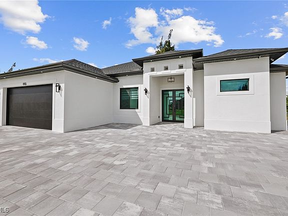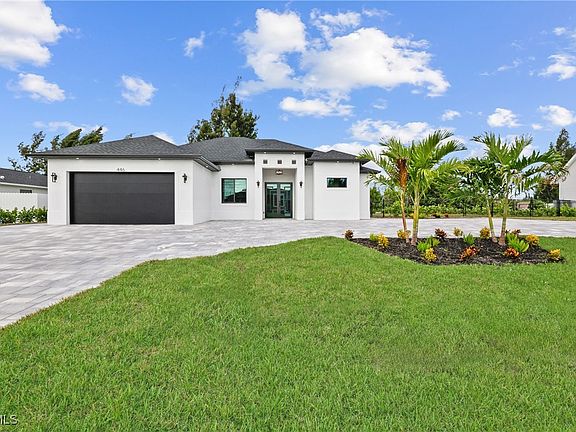 Discover this stunning home nestled in one of Cape Coral’s fastest-growing areas! Situated on a spacious triple lot with CITY WATER and NO FLOOD ZONE, this property offers the ideal foundation to create your very own private oasis. A grand 27-foot-wide paved circular driveway welcomes you home. Every wall — including the garage door — is fully insulated to maintain a cooler interior and improve energy efficiency. Inside, you’ll find 4 bedrooms and 2.5 baths, including one bedroom conveniently located near the entrance, perfect for a home office or guest suite.