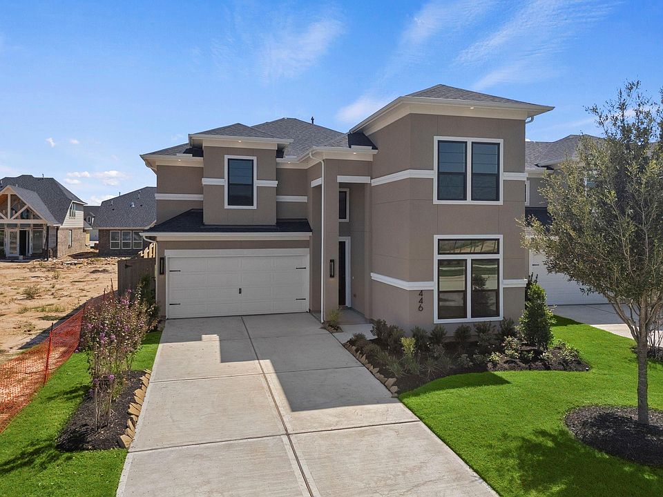 The Donley is a spacious, open-concept home that effortlessly combines functionality with modern elegance. Designed to accommodate families of all sizes, it features five bedrooms and four full bathrooms, including a secondary private ensuite for added comfort and convenience. The chef-inspired kitchen offers abundant cabinetry, expansive counter space, and a large prep island—perfect for both everyday meals and entertaining. Overlooking the dining area and family room, the kitchen flows into the main living space, where a striking wall of windows opens to an oversized covered patio, flooding the home with natural light. Upstairs, there are 3 bedrooms and 2 baths as well as an expansive game room overlooks the family room below and has the added touch of elegance with the wrought iron balusters. This home has the perfect touch of elegance and funcionality.
