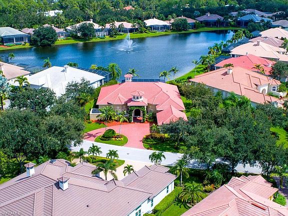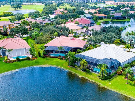 You'll be astonished by the stunning exterior of this palatial home in the Vineyards. The architectural details like the cupola and the elegant portico w/ magnificent double door entry invite you into this 4 bedroom, plus den, 4.5 bathroom home boasting a red pavered driveway to a 3 car garage and 4361 square feet of luxurious space. The grand, open living area makes the best of the Florida sunshine w/ a wall of windows opening to the large lanai with plenty of room for living and dining, including an infinity pool, and spa w/ long lake views. The light and bright great room feature marble floors under decorative ceilings and a sophisticated open kitchen w/ white shaker cabinets and contrasting backsplash, a breakfast bar and an island as well as a gas fireplace in the adjoining dining area. The large master carries on the indoor/outdoor living w/ a cozy sitting area w/ a wall of windows and a striking bathroom, w/ a separate on-demand water heater, dual vanities, and a sumptuous shower as well as an outdoor tub for bathing under the stars. Three more bedrooms and baths round out this gorgeous home sporting a newer roof and water heater which were replaced in 2018.