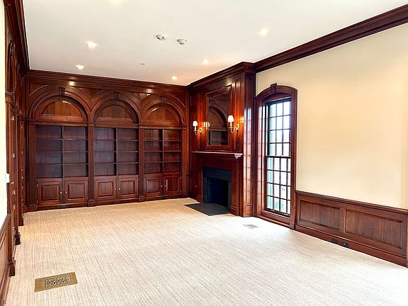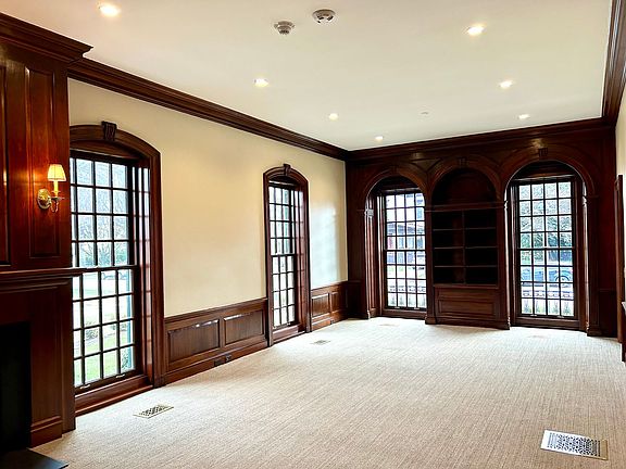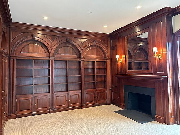 This spacious first floor apartment offers a breath taking living area with luxurious built-in book shelves, an ornamental fireplace with mirror and gorgeous woodwork through out.