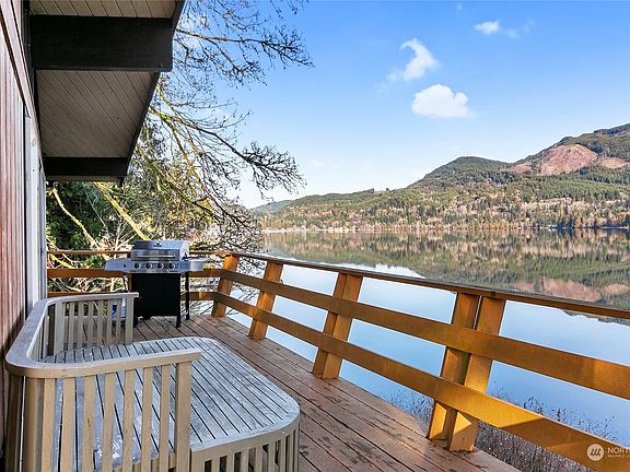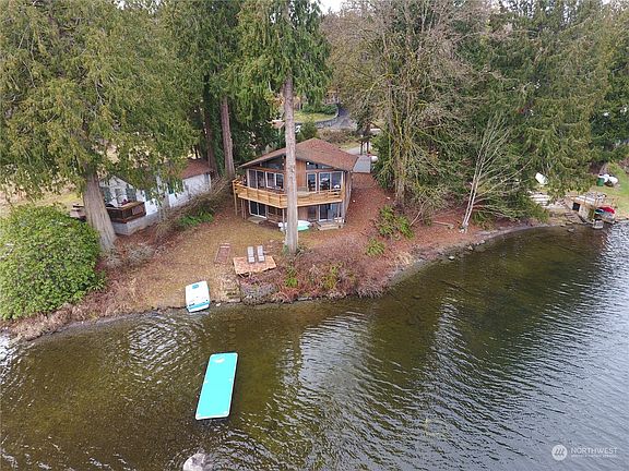 Step into the tranquility of a waterfront cedar home on west side of Lake Samish! 2240 sq ft, 2 bds/2ba + 3rd room currently used for storage. Kitchen updated w/ new island, flooring, cooktop, vent, cabs, tile. Fantastic view windows overlook peaceful lake, w/ waterfront dining & living room, hardwood floors. Open beam ceiling, cedar walls, wood stove, waterfront balcony. Spiral stairs lead to lower level family room/rec room, bath on each level w/ updates, utility room. Space for 1-2 more bdrms on lower level. This home sits well off the road for privacy and tranquility. 2-car carport, + extra parking. New UV water filter system & pump, water heater, windows. Dock rebuild permit available from County. Add a dock and let the fun begin!