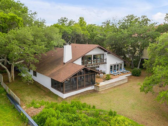 Nestled within a canopy of grand live oaks, this picturesque .84-acre property overlooks Charleston Harbor in one of the most sought-after iconic waterfront locations in Charleston, offering panoramic views of the Harbor, the historic Charleston Peninsula, The Ravenel Bridge and Fort Sumter.Built in 1968, this ''vintage'' home's design blends Mediterranean and Contemporary architecture and was inspired by the ambiance of a residence featured in the January 1962 publication of House & Garden magazine.The circular driveway and lush gardens afford privacy while welcoming you into the home through a charming entry courtyard, with towering bamboo, specimen plantings, stucco walls, iron work and a reflection pond. A decorative, wood-paneled door and sliding glass doors offer several access into the home from the courtyard. The residence boasts exceptional views from nearly every room and offers a functional floor plan with generous size rooms, ideal for entertaining. Interior features include plaster walls, redwood beamed vaulted ceilings with tongue & groove planking, and terra cotta flooring. The first floor is comprised of a living-gathering room that features a wood burning fireplace with dual access to the screened porch, spacious dining room, an expansive galley kitchen that was fully renovated in 2019, and a family media room. The gallery hallway leads to the first floor Primary Bedroom ensuite with walk-in closet and a wall of sliding glass doors opening onto the terrace patio. A guest bedroom and full bath complete the first floor living area. The tucked-away staircase leads to the second floor living space where two guest bedrooms, with shared bath and balcony, enjoy the waterfront views and direct access to the terrace patio below. Maritime balcony rails were installed, and all the bathrooms were renovated in 2019. The roof was replaced in 2015 and a new water heater was installed in early 2023. Currently, the owners have a Dock Permit application in process for a 260ft dock, with the intent to transfer to a buyer. Charleston Harbor's normal tidal water fluctuations are 0'-7' throughout the day. Just minutes to Historic Charleston and the Low Country beaches, this well-established community is golf-cart friendly and ideal for walking or biking, with dining and shopping options nearby. In addition, the home is within walking distance to the James Island Yacht Club, Demetre Park, Pickney Park, the SC DNR complex and an additional park planned for the 23-acre waterfront property in May Forest recently purchased by the State. The property's premier location, private serene setting on nearly an acre, and stunning Harbor views, offers an exceptional opportunity to upgrade, make additions, entirely rebuild ...or simply enjoy the incredible sunsets!