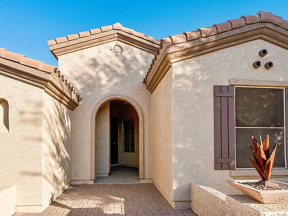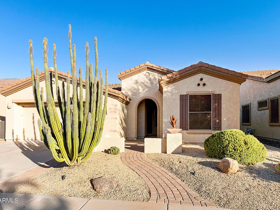 Are you an active 55+ individual looking for the perfect home in a guard-gated community that enjoys pickleball, tennis, swimming, art, bocce ball, golfing and so much more? If so, then this is the home for you! This freshly painted, single-story home has a wonderful open concept, high ceilings, natural light streaming through the many windows, tile floors. Imagine relaxing under your covered patio, surrounded by lush greenery at the end of your day. Just minutes to go shopping. A bonus feature is the home's location happens to be a short walk to the Clubhouse