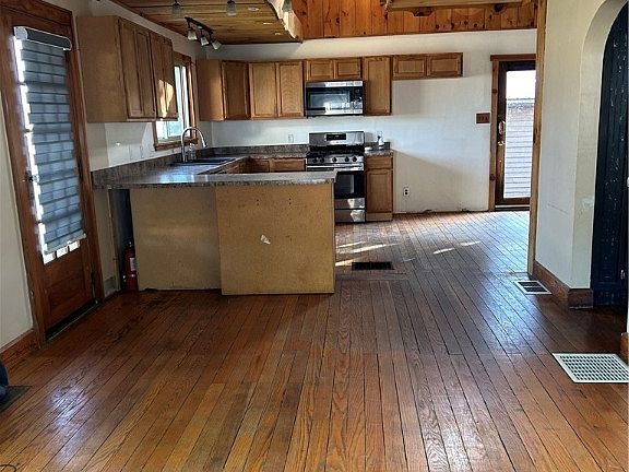 Log-sided homeHuge covered deckBeautiful cabinetsFull basementWood floorsUpdated metal roofVinyl windows