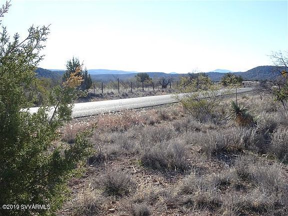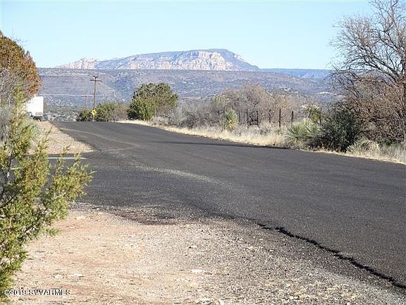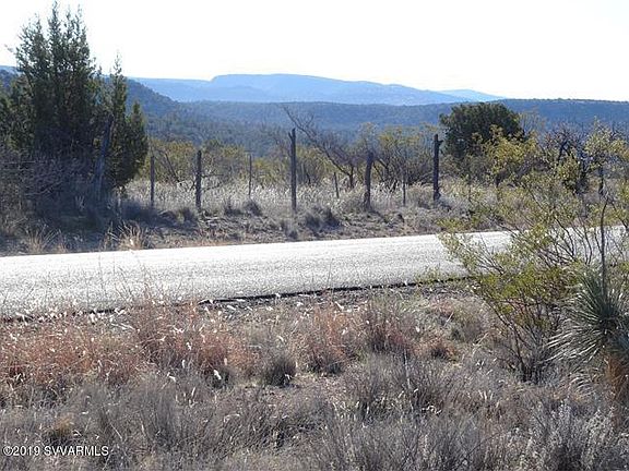 Panoramic views of the Coconino National Forest (that is literally across the street) and also views of Sedona Red Rocks and the Mingus mountains. Large 0.34 acre level lot with water (AZ water) and electric (APS) available. Hiking trails close by. Zoned for site built homes.
