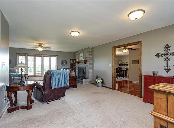 Breathtaking true ranch home on +/- 2.4 Acres in the beautiful countryside! This home has been completely remodeled with tons of upgrades including all new carpet, paint and appliances! Geothermal heating & cooling! From the first step inside, you will fall in love with the living room w/ large bay windows & a see-through fireplace connecting to the dining room. The kitchen features custom stained cabinets, s/s appliances & a dining room with direct access to the patio. Main floor master bedroom w/private bath.