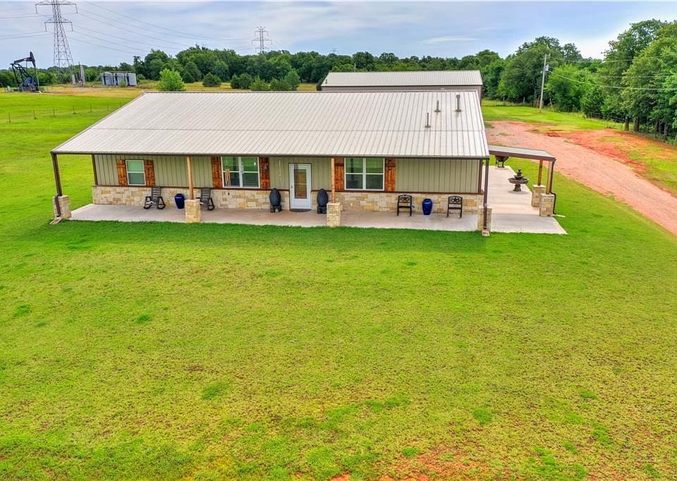 Gorgeous home on 3 acres!!! Large open floor plan w/ living area that flows into a gourmet kitchen. Kitchen has granite counter tops, built ins, pantry, custom cabinets and is a cooks delight. Master bedroom is huge, w/ an exceptional large master bathroom and an amazing closet. No expense was spared when this home was custom built. Sit and watch the sunrise or sunset on the front and back patio, that extends the full length of the house. Huge 40x60 shop with Central HVAC, this acts as a detached garage that can hold 4 more cars. Over sized garage doors on both ends. Full bathroom in the shop. A generator stays w/ the property too. A 6 ft vehicle size stall lean to is attached. 1000 gallon propane tank is owned and can stay with the property, along with an air compressor and water softener. Don't miss out on this awesome, one of a kind home. Well built w/2x4 walls and foam insulation to keep the bills low. Outside storm shelter. This home is loaded!! Don't miss out on this beauty!!