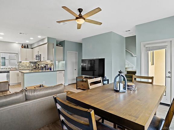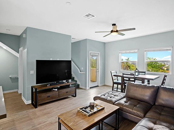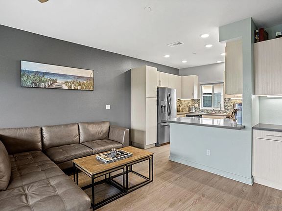 Just Listed in San Diego! Property has an ASSUMABLE VA LOAN @ 2.25%! Three year old 3BR/2.5BA tri-level townhome in gated complex with Coronado Bridge views! This unit was originally sold at a premium for its location in the west facing building, with more upgrades and better views than the former model units! Modern kitchen with white Euro style cabinetry, stainless steel appliances (fridge included!), grey quartz countertops and custom backsplash. Upgraded luxury plank flooring installed throughout most of home (with exception of stairs and top floor bedrooms). Spacious laundry room on lower level with additional upper cabinetry (washer & dryer convey!) and sink. Other improvements include upgraded fans, smart lock, Ring Door bell and tankless water heater. Two car attached garage with bonus storage closet and additional space for storage even when two cars are parked. Super convenient location with close commute to the 805 and a short drive to downtown San Diego!