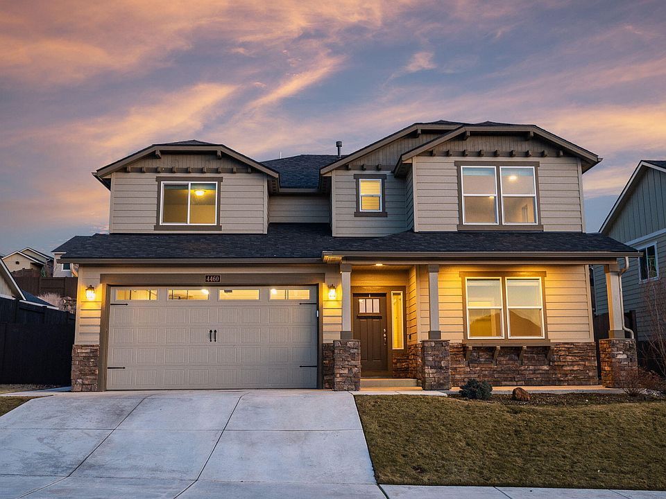 Welcome to your dream home! Nestled on a generous .21-acre lot, this stunning 2968 square foot residence boasts modern amenities and thoughtful design of 4 bedrooms upstairs and an Office/Den/Bedroom on the main level. Step inside to discover a versatile layout featuring a coveted Jr. Suite, perfect for guests or a private retreat. The Primary Bedroom offers a touch of luxury with dual vanities and a tranquil soaking tub, complemented by a separate shower for added convenience. Enjoy year-round comfort with a reliable heat pump that ensures ideal temperatures no matter the season. This home has solar panels that harness the power of the sun, while a whole-home air filtration system ensures crisp, clean air throughout. Step outside to your own oasis, complete with a covered patio ideal for al fresco dining and entertaining. Whether you're relaxing in the spacious backyard or hosting gatherings with loved ones, this home offers the perfect blend of indoor-outdoor living.