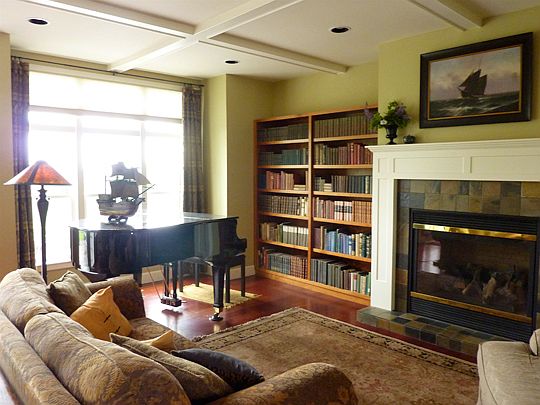 Single Family Home for sale by owner in Bellingham, WA 98226. Custom built shingle style home on gently sloping 4.48 acres near Squalicum Lake with stunning vistas of the Canadian Coastal Range and Stewart Mountain. Extraordinary design and exceptional craftsmanship with gorgeous wide plank Brazilian Cherry hardwood floors, Cherry cabinets with granite countertops throughout the house, solid fir doors, paneled walls, box-beam ceiling and many built-ins. Quiet and pastoral setting, close to town. Features: Shingle style 4 bedrooms Main floor Master bedroom 2.5 baths 2 gas fireplaces Brazilian Cherry Floors in Living, Dining, Family Rooms and Kitchen High efficiency furnace and on demand water heater Extensive decorative stamped patios and walkways Central vacumn 3401 square feet 4.480 acres Built in 2006 3 car garage -- 24 x 32 ft Detached shingle style shop -- 20 x 24 ft Pond Fenced vegetable garden 6 miles from Interstate-5, 10 minutes to downtown Bellingham 1 hour and 15 minutes to M