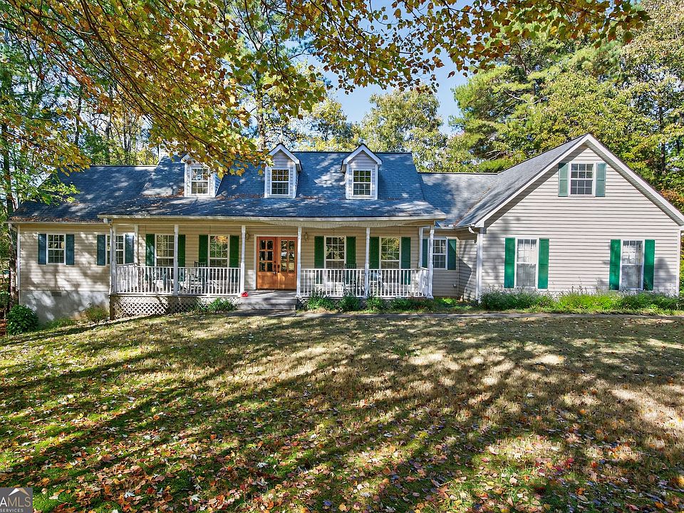 WOW! Complete remodel! This home will be MOVE-IN ready complete with all new finishes throughout including new flooring, paint, updated kitchen, stainless appliances, lighting, custom design elements and MORE! Situated on just under 1 acre, this property has SO much to offer. Enjoy the cool Fall evenings on your expansive front porch having a drink while the world passes you by or enjoy plenty of summer fun BBQing on the back deck overlooking the wooded backyard. The Primary on the Main features beamed ceilings, custom lighting, custom closet and gorgeous new en suite bathroom. Two additional bedrooms can be found upstairs along with another fully updated bathroom. Additional storage can be found in the unfinished basement area of the home. The home offers plenty of privacy and is surrounded by mature trees and a well maintained subdivision near all area amenities including Lake Lanier. Don't miss out on this home because all you need to move in are your suitcases!