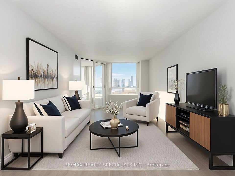 Welcome to this beautifully updated 2-bedroom plus den, 2-bathroom condo in the heart of Mississauga. This bright, carpet-free unit showcases modern upgrades throughout, including refreshed kitchen cabinetry, sleek countertops, contemporary bathroom vanities, and stylish laminate flooring. The spacious living room is filled with natural light and opens to a sun-filled solarium with sweeping southwest views. Stainless steel appliances and abundant closet space add both style and convenience. Perfectly located near Square One, Sheridan College, grocery stores, parks, schools, libraries, restaurants, and major highways, this residence offers an ideal blend of comfort and accessibility. The building itself provides outstanding amenities, including an indoor pool, fitness centre, recreation room, and 24-hour security.