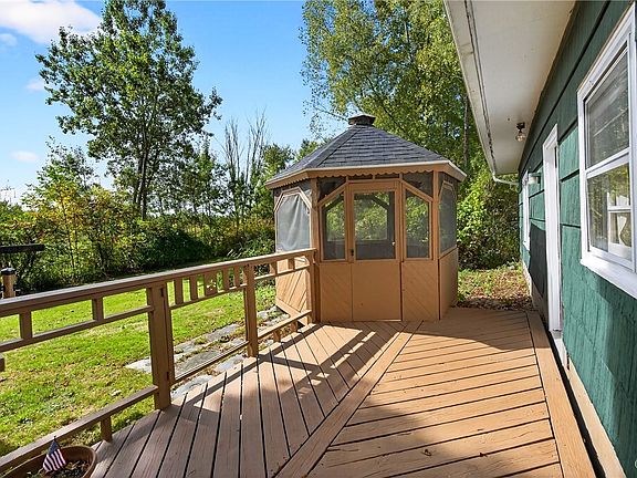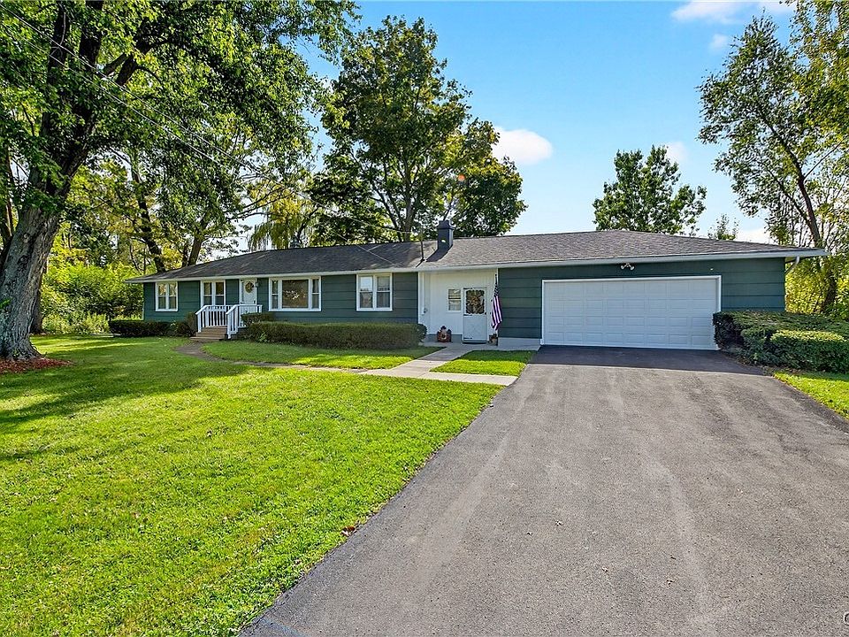 Come see this Ranch built in 1964. It features three bedrooms and 1 bath, encompassing 1,300 square feet of living space with a ready to finish basement. This home sits on a .60-acre private lot with a deck and gazebo. Located in the town of Clay and CNS schools. Inside, the home you will find an open kitchen living concept along with an additional living room with a wood burning fireplace. The two car garage is spacious and has some cabinet storage along with a ladder to access the attic. Updates to this home include: Roof (2018), Furnace (2018), AC (2018), Electric panel (2018), Basement French drain (2021), Soffit & Fascia (2024), Patrial walkway repair (2024) and new paint in rooms. This residence is close in distance to local shops and restaurants. It also provides easy access to nearby highways, enhancing its appeal for those seeking privacy, comfort and convenience.