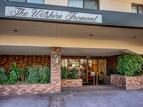 Third floor condo in The Wilshire Fremont with open floor plan, 2 bedroom suites and a large private balcony! Building features 24 hour guarded entry, pool, spa, sun deck. Double doors to condo open to formal entry that leads to generous formal living room with fireplace and wet bar. Sunshine infused formal dining room has floor to ceiling glass doors that open to private deck. Kitchen with granite counters, double wall oven, cooktop, dishwasher, sink, and eat-in breakfast area with additional storage. Extra large master suite with abundant natural light, multiple closets for storage, dressing area with large vanity and double sinks, deep soaking tub and separate shower. Large second bedroom suite. Laundry in unit. Private deck overlooks outdoor sun decks, pool and spa. 2 covered parking spaces. Central AC, hardwood floors + new carpet. Amazing central Hancock Park location!