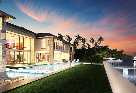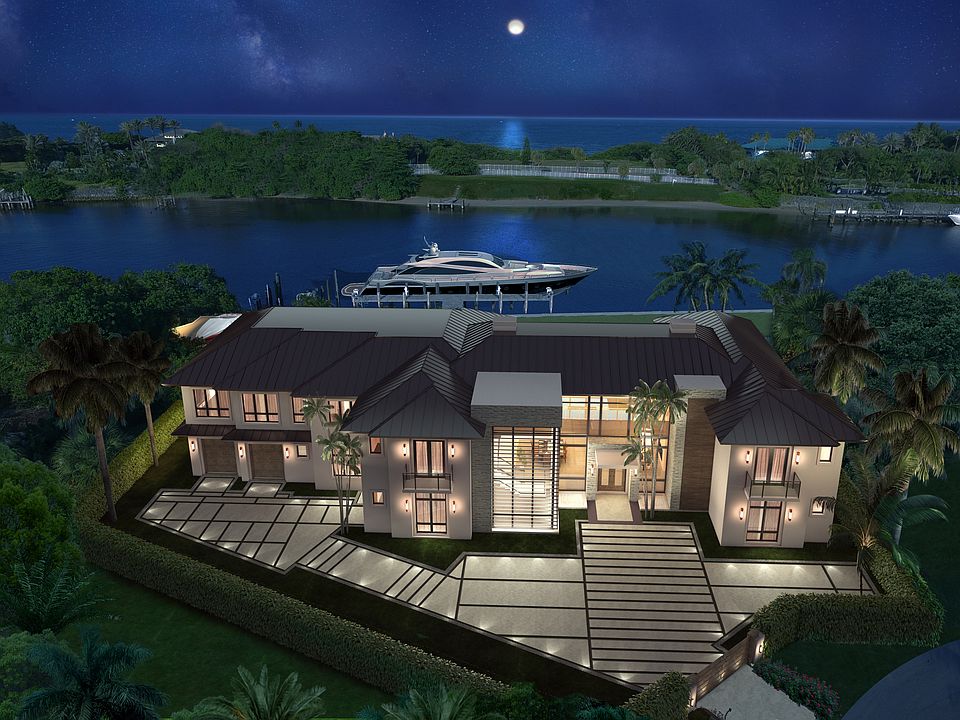 Note: Original Structure Exists on Property. Offered Pre-Construction Only. Staging a front-row view on the Intracoastal Waterway, this brand-new trophy estate is set to make its debut on a prestigious stretch of wide waters across from the Ocean-to-Intracoastal mansions of the famous Hillsboro Mile, with the boating activity making the scenery all the more picturesque. High-end custom builder Frankel Estate Homes and architect Carlos Martin are the award-winning firms creating this modern coastal-inspired masterwork, sheathed in glass across the water side to showcase the view from 161± feet of sweeping shoreline. Reflecting pools establish the tranquil water theme at the entrance to the striking five-bedroom residence set off by a brise-soleil sun shade and beautiful natural stone elements. The interiors are designed for effortless living in a series of openly flowing spaces comprising the main living/dining areas, the kitchen/family room, and the club room/office/library. Glass walls give each an open connection to the outdoors where guests can lounge by the resort-style pool, dine on the lanais, or have drinks out on the waterfront’s main yacht dock and take in the stunning scenery. Giving family and guests maximum privacy, the luxurious bedroom suites feature exquisite master quarters with a waterside balcony and two separate baths. Not only does the estate provide the car connoisseur with a five-bay garage, it is also yachter’s dream, essentially having its own private marina in this prime low-wake zone near the Lighthouse Point Yacht & Racquet Club, minutes from the inlet. The massive T dock is large enough for a 100±-foot mega vessel, while the side boat slip with lift can accommodate another 50±-foot luxury vessel. Epitomizing world-class living, this extremely rare new showplace is truly unparalleled on the 20±-mile stretch of South Florida’s coastline between Boca Raton and Fort Lauderdale. Property Directly fronting 161± feet on the Intracoastal Waterway, this brand-new trophy estate commands an expansive water vista to the Hillsboro Mile mansions. Resort-style living centers on the fabulous outdoor entertainment space featuring a linear pool by lanais with a summer kitchen. In a low-wake zone, the multi-yacht dockage provides an immense T dock plus a side slip with boat lift. The gated motor court has additional parking by the five-bay garage which includes access from the shore side for storing water craft. Residence The collaboration of award-winning Carlos Martin Architects and Frankel Estate Homes, this modern coastal-inspired residence comprises a grand total of 13,264± square feet with five bedrooms plus five full and two half baths. Included in 9,615± square feet of air-conditioned living space is a versatile bonus space of 1,134± square feet which could be converted into additional bedrooms, a studio, or theater room if desired. First Floor: Reflecting pools frame the double-door entry into the foyer, flanked by the staircase and elevator tower. Just ahead, glass pocket doors open to the waterside pool patio from the two-story great room’s living area and dining area with wine display. Glass pocket doors join to the waterside lanai from the chef’s kitchen which provides a butler’s pantry/catering kitchen and is open to the family/morning room. Across the great room, the glass-walled club room with combined office/library connects to another waterside lanai. A cabana bath, powder room, and private bedroom suite are also on this level. Second Floor: Off the bridge hallway overlooking the great room below, the serene master suite opens to a balcony giving wide-open views over the Intracoastal Waterway. This luxe sanctuary is complete with two wardrobe rooms and two spa-like baths, one with the waterway as the backdrop. Three more bedroom suites include a VIP waterfront suite with balcony. Served by a separate staircase, the bonus space opens to its own waterfront balcony.