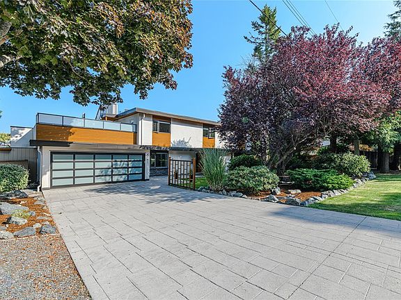 Spectacular, unobstructed views set the stage for this reimagined Gordon Head coastal retreat. Totally renovated from top to bottom with redesigned kitchen, beautiful high-end lighting, fixtures, glass railings, two fireplaces (wood and gas), heated tile in all bathrooms and main tiled areas, and new wood flooring throughout. Outdoor living shines with tiled rooftop and garage decks, two lower patios — one hot-tub ready with a glass roof, the other with a lighted pergola — all designed for year-round enjoyment. Maintenance-free exterior finishes include aluminum longboard siding, slate, and stucco. Steps to Glencoe Cove beaches and within easy walking distance to Margaret Beach, Arbutus, and Mount Doug. A rare blend of modern quality, comfort, and timeless West Coast lifestyle. Perfectly positioned for convenience, this home is just minutes from the University of Victoria and offers excellent access to transit routes, making commuting effortless.