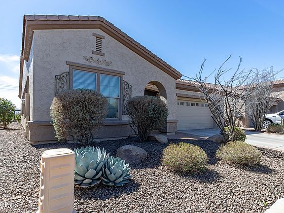 This beautiful ranch style home located in the guard gated community Trilogy Power Ranch! With astonishing mountain views from the backyard, kitchen, family room, and master bedroom. This home features 2 bedrooms + Den, 1.75 bathrooms, and 2,114 square feet including a MB split floor plan, granite counter tops in the massive kitchen with a large breakfast bar, beautiful built in entertainment center, 10 ft. ceilings, large master bedroom window, a golf cart garage, and a gas fireplace in the family room!! The water softener and water heater are only a year old! The Trilogy Power Ranch Community offers many amenities including an Art Room, Ballroom, Board Conference Room, Bocce Ball Courts, Box Office, Catalina Card Room, Ceramics Room, Clubhouse, Computers in the Library, Continued...