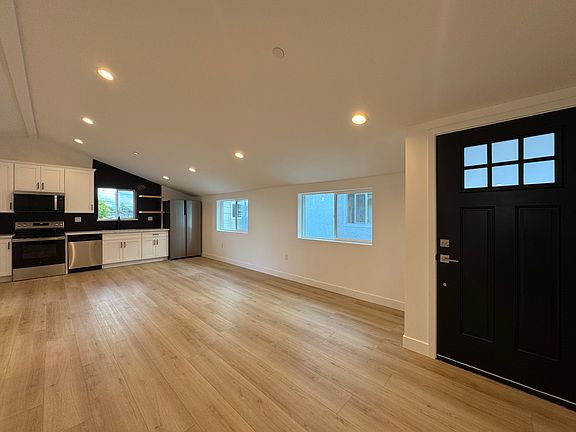 Inside, you'll find a spacious open-concept layout with large windows and vaulted ceilings throughout, creating a bright, modern, and airy atmosphere. The kitchen, dining, and living areas connect seamlessly, making the space ideal for both relaxing and entertaining.