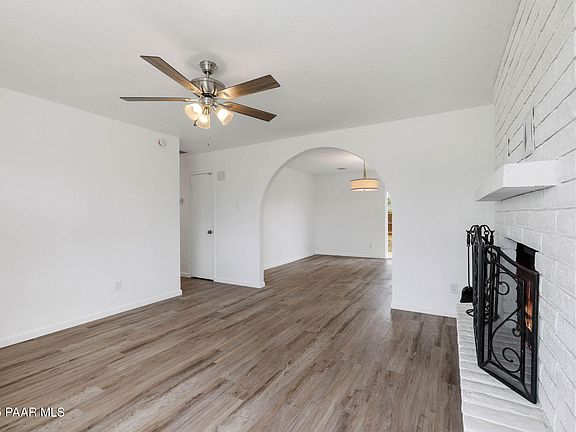 Welcome to this move-in ready updated home, perfectly situated in the heart of Prescott, featuring 3 beds & 2 baths. Step inside to find fresh interior & exterior paint that pairs effortlessly w/ the newly installed wood-look LVP flooring. The great room boasts a cozy wood-burning fireplace & flows seamlessly into the updated kitchen, which offers new cabinets, sleek quartz countertops, & stainless steel appliances. All bedrooms are finished with brand-new carpet. Retreat to the primary bedroom, complete w/ an ensuite bath featuring a new vanity with a quartz countertop & a refinished shower surround. Out back, enjoy a covered patio & a generous open yard, a blank canvas ready for your personal touch, garden, or outdoor living space. Additional upgrades include a NEW ROOF & NEW WATER HEATER!