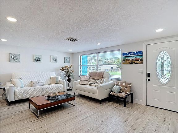 Live the Florida lifestyle in the highly sought-after waterfront community of Gulf Harbors—a private beach community located directly on the Gulf of Mexico. Residents also enjoy a brand-new walking, jogging, and pet-friendly park, along with the unique charm of a true boating and golf cart community. This home offers an inviting open floor plan featuring a spacious living room that flows into the dining area and kitchen. The cozy family room overlooks a covered screened patio, conservation lot, no rear neighbors, and a white vinyl privacy fence for added privacy. The home includes 2 generous bedrooms, 1 full bath with a walk-in shower, 1 half bath, and a 1-car garage. Features include a screened patio, outdoor sitting area, and spacious yard. Minimal annual fee provides access to a private beach. Perfect for year-round living or a seasonal retreat. Nestled in a prime location, Gulf Harbors is just minutes from historic downtown New Port Richey, where you’ll find concerts at Sims Park, local restaurants, microbreweries, cafés, and the Richey Suncoast Theatre. Conveniently close to beaches, state parks, theme parks, and major sports venues.