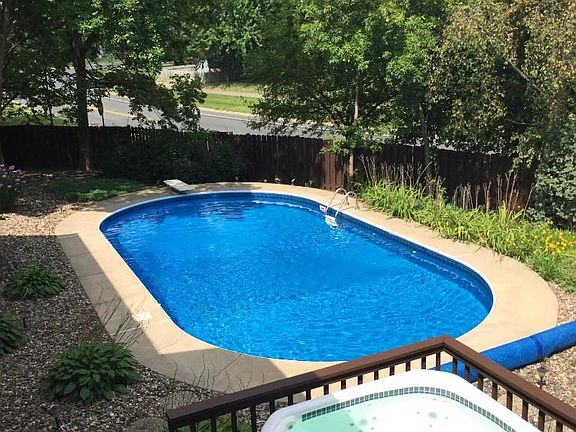 Situated on a perfect mature corner lot w/fenced yard & picturesque outdoor living.Including in ground pool,Huge multi level deck & large hot tub. Completely Updated w/NEW windows,roof,siding,gutters, tiled baths w/granite & Kt w/Granite counters,stainless appliances,tile bk splash.5+ bedrooms, 3 baths & private master suite.Great Eagan neighborhood &196 schools.
