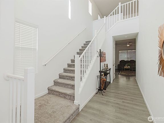 Skip the construction zone—this one’s already polished and perfected! This nearly new home (built just 2 years ago) offers modern style and comfort in a prime location. The sleek yet inviting kitchen features quartz counters, a large eating island, coffee bar, pantryand open flow to the spacious living and dining areas with durable LVP flooring throughout the main level. Upstairs, enjoy a generous loft-style family room with peek-a-boo views of the Brothers (Olympic Mountains), laundry, two bedrooms, and a luxurious primary suite with a 5-piece bath and large walk-in closet. Step outside to the covered patio with cedar ceiling-perfect for year-round entertaining. Convenient to shopping, schools, and commuter routes!