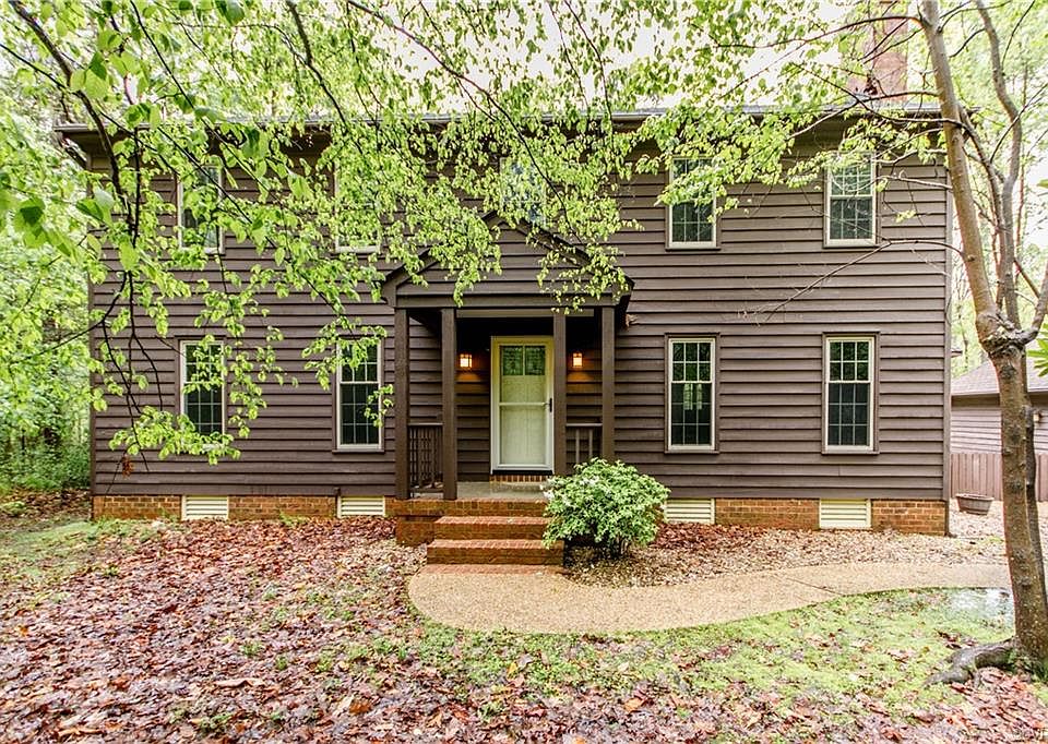 A large inviting home in Brandermill! Hardwood floors on the first floor, 2 staircases, one in the front and one in back that leads to the 2nd story. New carpet upstairs and new paint throughout. The downstairs boost of a large living room, a dining room, a large kitchen with granite countertops, hardwood floors, refrigerators conveys. The family room has exposed beams, wood burning fireplace, hardwood floors and a built in bar area. Upstairs has 4 large bedrooms, and the owner's bedroom has its own ensuite bathroom. The roof is approx. 7 years old and the 2 HVAC units are 5-7 years old. The house has thermal replacement windows throughout. The laundry room is on the first floor and is oversized and the washer and dryer both convey. There is a 2-1/2 car garage with extra sgorage up top, and a detached shed which appears to be perfect for a hot tub! The driveway is beautiful sealed peebles and this house is on a culdesac!