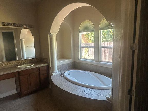 Spacious stucco 4 bedroom 3 bath home, with den, formal dining, covered patio and 3 car garage. Walking distance to shopping and a golf course. Located in River Crest Subdivision and close to schools and transportation. Nice open floor plan with eating area in kitchen and a breakfast bar.