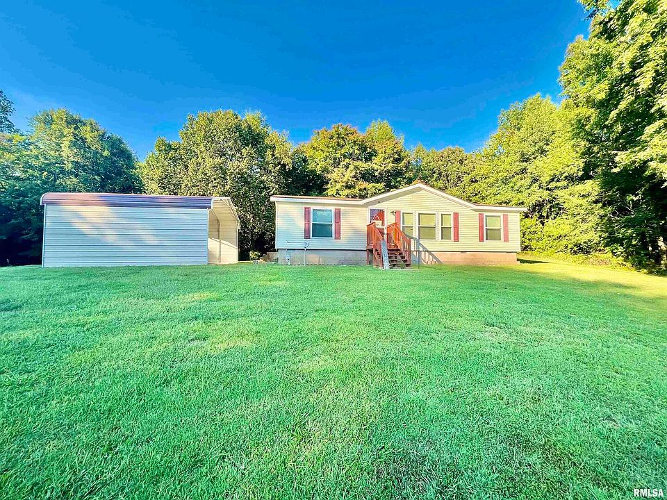 Well maintained three bedroom, two bath home with lots of updates on almost 11 acres in Massac County. Open floor plan with spacious eat-in kitchen. New roof, new HVAC, new flooring throughout the home, new windows and a new carport. Kitchen appliances stay with the home. Three outbuildings, two with power. The mostly wooded property offers a great habitat for deer, turkey and other wildlife that you can watch from your back deck.