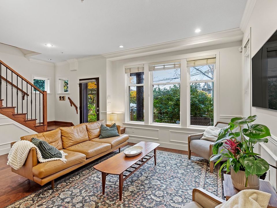 This front 1/2 duplex is a rare find, located on a quiet, family-friendly street. Architecturally designed by Birmingham & Wood, 'Welwyn Mews' is an exclusive collection of 5 craftsman-style homes. The home feels bright and spacious with an open-concept main floor, powder room, and S/S appliances. The 2nd level features 2 bright bedrooms and a full bath. Ascend to the 3rd-floor primary suite, a private oasis with soaring ceilings, an ensuite, a private deck, and scenic views. Enjoy the private fenced garden and easy access to the best of the city. BONUS: Single detached garage! Steps to great schools, parks, and transit, with a quick connection to downtown and Commercial-Broadway. Book your private showing today!